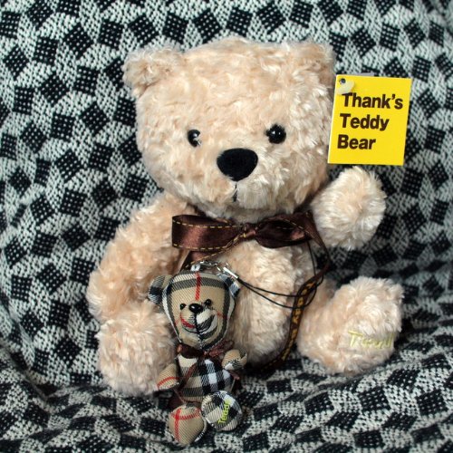(中古品)Teddy Bear テディベア ぬいぐるみ(Mサイズ)25cm ベージュ チェックベアーストラップ付/Unknown/60038/Thank's Teddy Bear/Teddy Bear テディベア ぬいぐるみ(Mサイズ)25cm ベージュ チェックベアーストラップ付/
