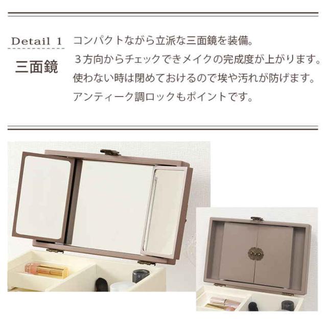 アンティーク風 三面鏡付 コスメボックス メイクボックス 幅27cm 引き出し付 取っ手付 ベッドルーム 寝室 北海道追加送料 沖縄・離島別途送料見積もり メーカーより直送 MUD-6740