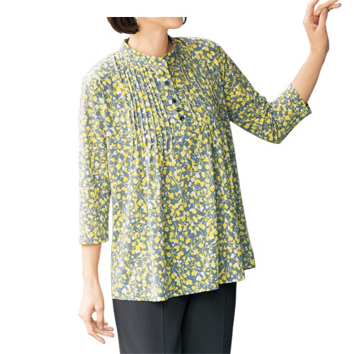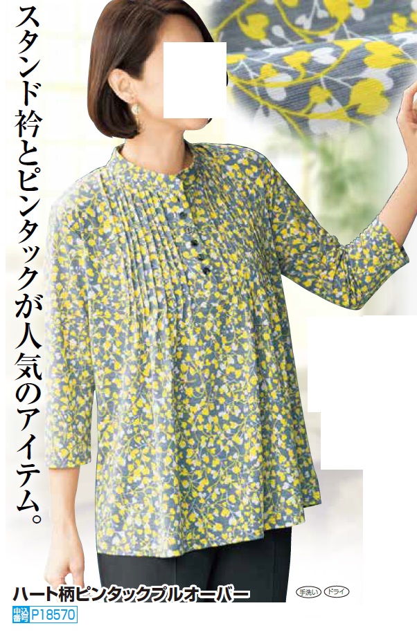 完売 ブラウス 春夏 ハート柄ピンタックプルオーバー スタンドカラーブラウス レディース 婦人服 ミセス シニア イエロー グレー デザインブラウス シニアファッション 50代 60代 70代 80代 母の日 お母さん nss p18570