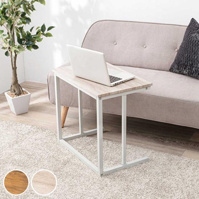 サイドテーブル 幅広 幅60cm 木目調 コの字 ( テーブル ナイトテーブル ソファサイド デスク サブ 簡易 パソコン 作業 机 おしゃれ 北欧風 モダン 玄関 リビング 白 ブラウン ホワイト スチール脚 )