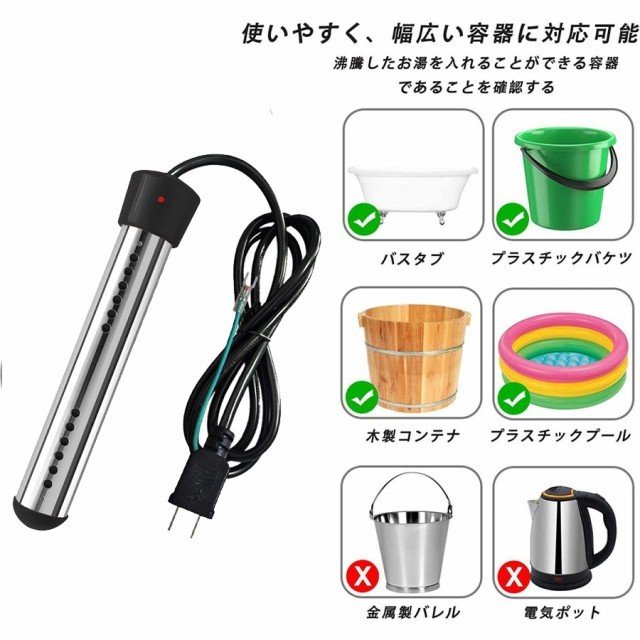 プールヒーター 電気給湯器 100V 1500W 70°自動電源オフ浸漬給湯器 電線1.5M お風呂 家庭 アウトドア 学校に適しています 投げ込み