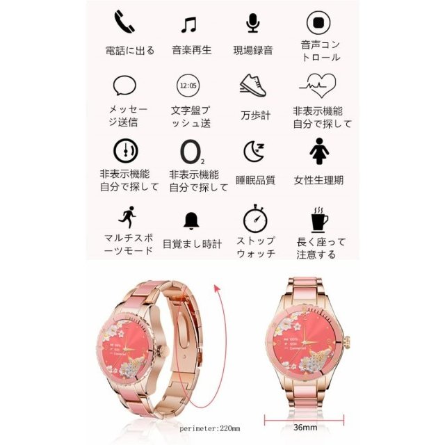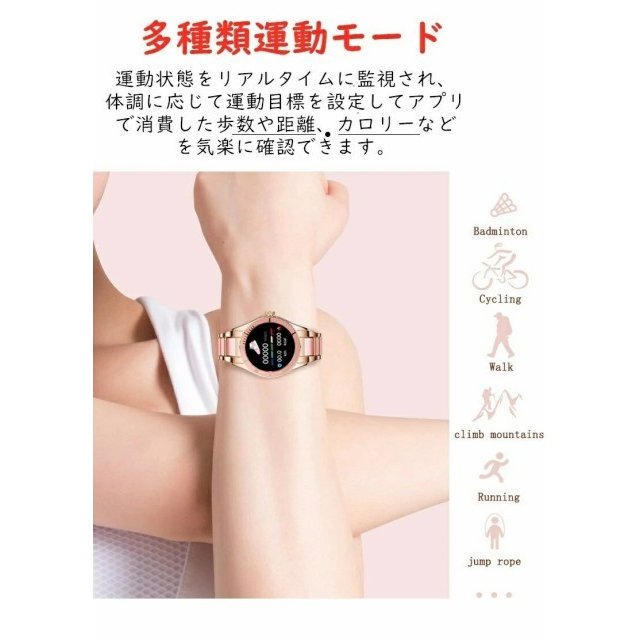 スマートウォッチ レディース iPhone Android LINE通知 健康管理 2022最新 多機能 睡眠監視 生理管理 活動量計 歩数計 心拍数 呼吸率 スポーツ腕時計 日本語対応
