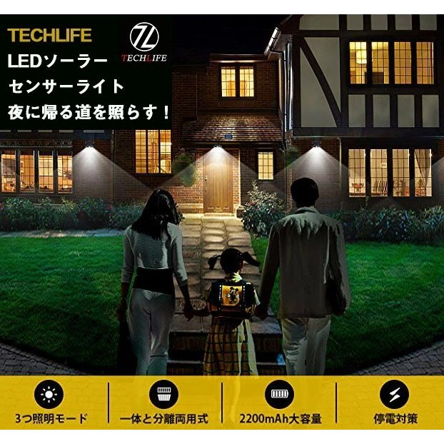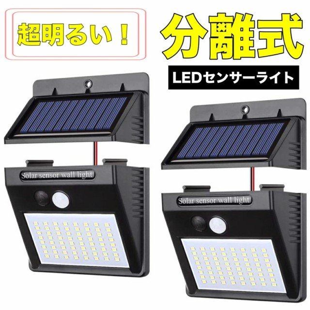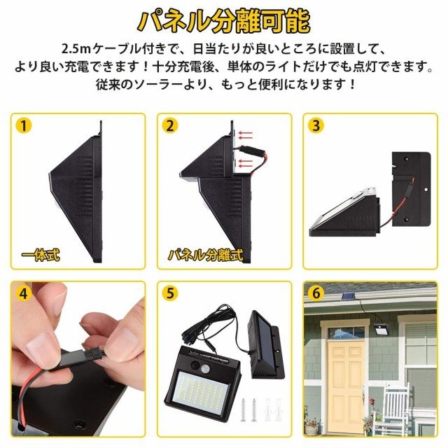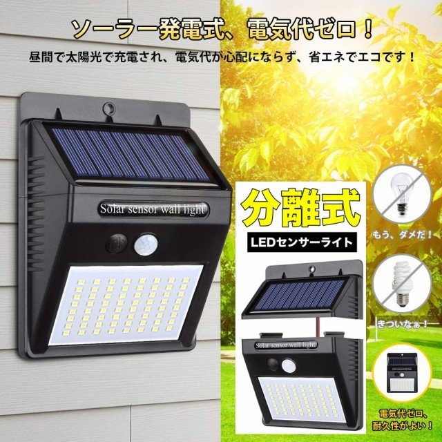 パネル分離式LEDソーラーセンサーライト LEDソーラーライト センサーライト 64LED パネル分離可能 ケーブル付 三つ点灯モード 高輝度