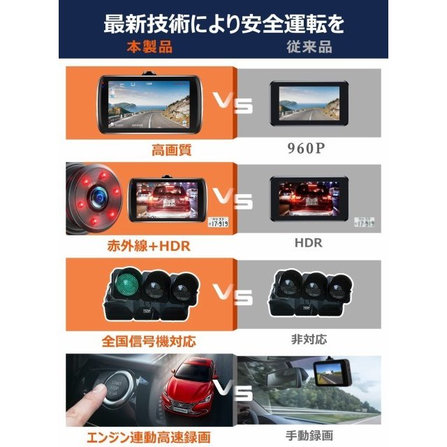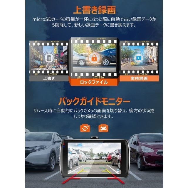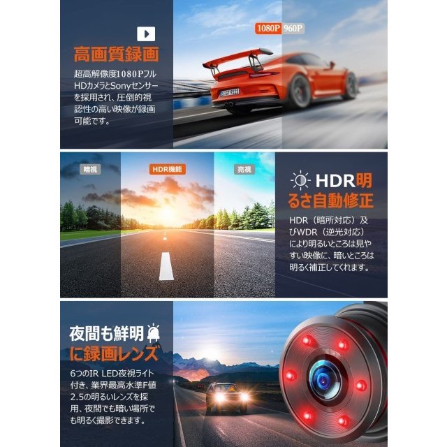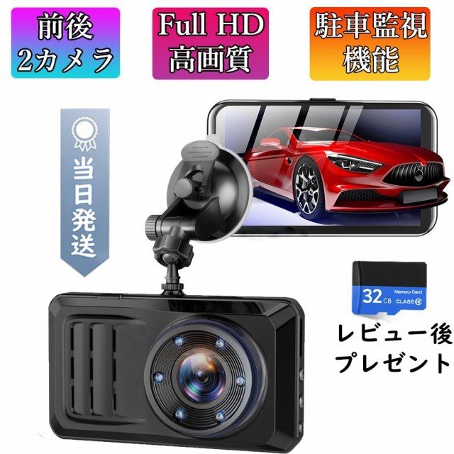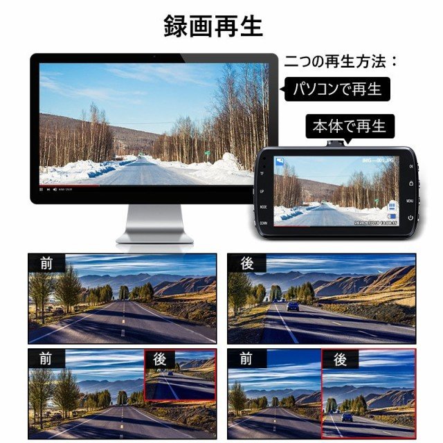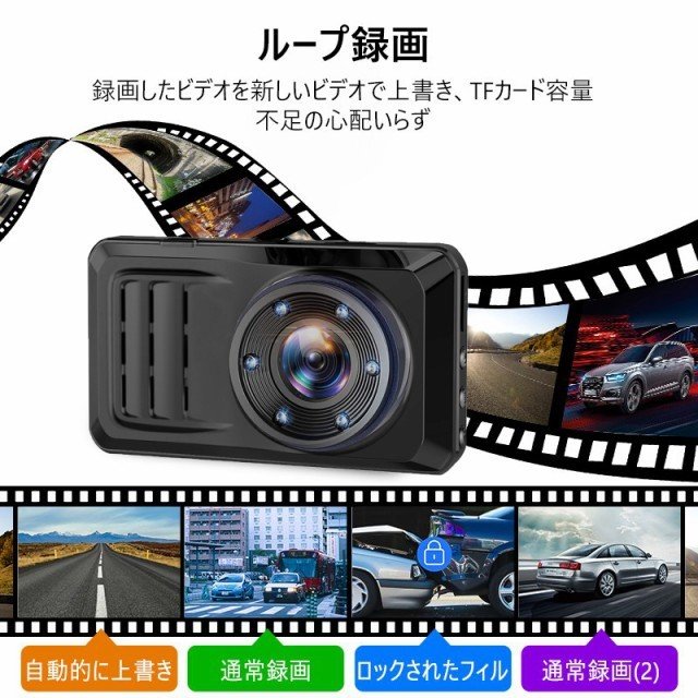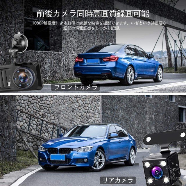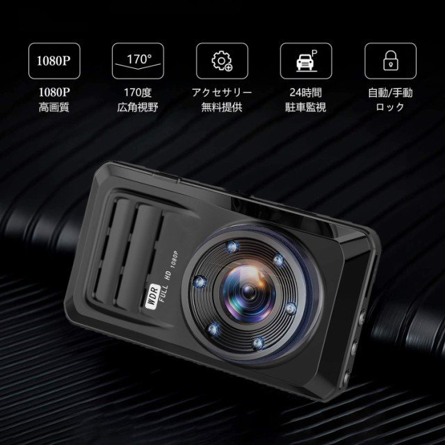 ドライブレコーダー 前後2カメラ フルHD高画質 24時間駐車監視機能 夜間撮影 170度超広角レンズ G-sensor ループ録画 1080PフルHD高画質