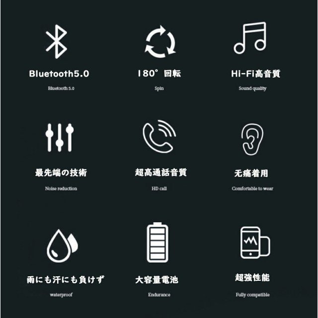 【超大容量バッテリー 】超大容量バッテリー内蔵により、長時間通話可能,驚きの長使用時間を誇ります。Bluetoothイヤホンの電力不足を有効的に解決したことで、充電切れによって音楽や通話が妨げられることはありません。