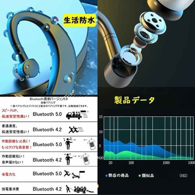 Bluetooth ヘッドセット 超大容量バッテリー 自動接続 V5.0 片耳 左右耳兼用 高音質 長持ちイヤホン CSRチップ搭載 マイク内蔵 日本語取扱書 iOS android対応