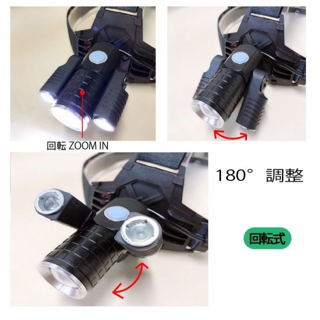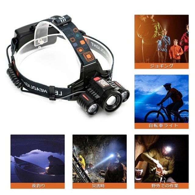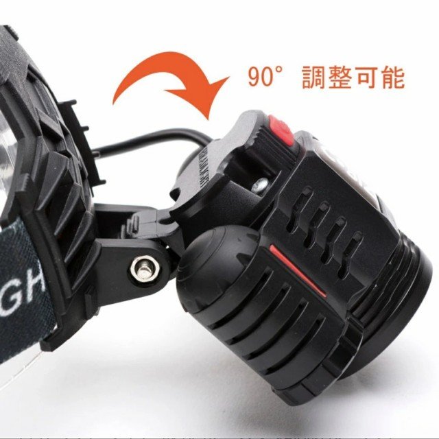 LEDヘッドライト led 充電式 ヘッドランプ - 軽量 防水 90度調節可能 高輝度 18650型バッテリー 夜釣り 停電時用 登山 アウトドア作業用 超強