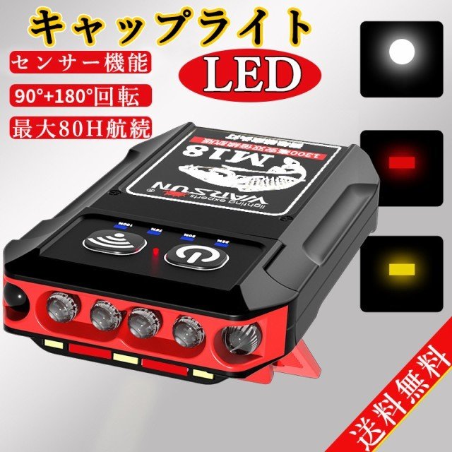キャップライト LEDライト ヘッドライト USB充電式 センサー機能 90+180度回 最大80H航続 軽量 防犯 停電対策 読書 アウトドア 残量表示 生活防水 夜釣り