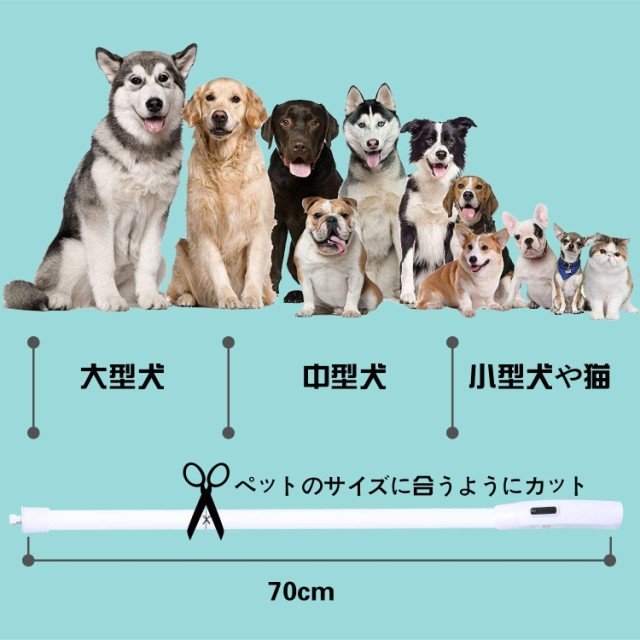 【サイズ調整可能】長さ70cm、はさみ標識のある側で切断すれば、サイズは調整できます。コーギー、チワワなどの小型犬や猫から、アラスカマラミュート、秋田犬などの大型犬まで対応できます。剪断する時は、「はさみ」標識のある側でご注意ください。
