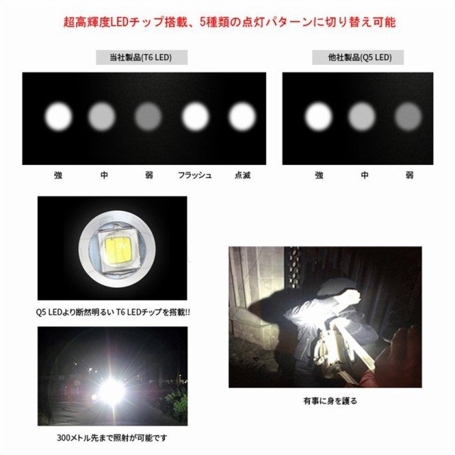 世界の軍隊・特殊部隊・警察などで採用されているCREE社製高輝度LED「T6」を搭載