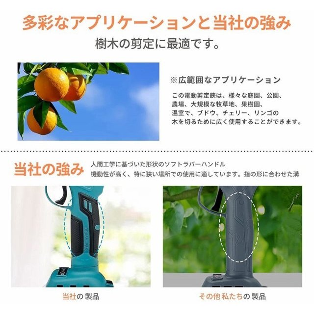 幅広い用途 :庭園、公園、農場、大規模な牧草地、果樹園、温室に幅広く使用でき、ブドウ、桜、リンゴの木などを切断できます。