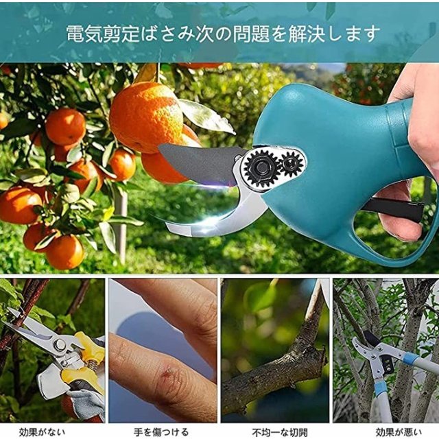 充電式電動ハサミ 枝切り 充電式剪定ばさみ コードレス 庭木 枝切り 果樹用 剪定鋏 園芸用剪定用具 バッテリー2個 収納ケース付き