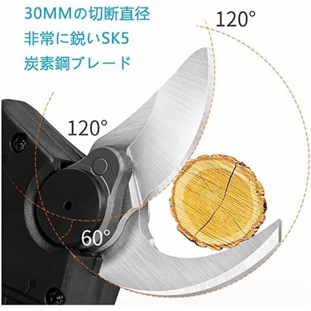 切断直径 :剪定直径4段変更可能、最大切断枝直径30mm,最小切断枝直径10mm。直径30 mm以内の木の枝は簡単に剪断でき、枝を傷つけない。(樹木の状態により変わる場合があります)