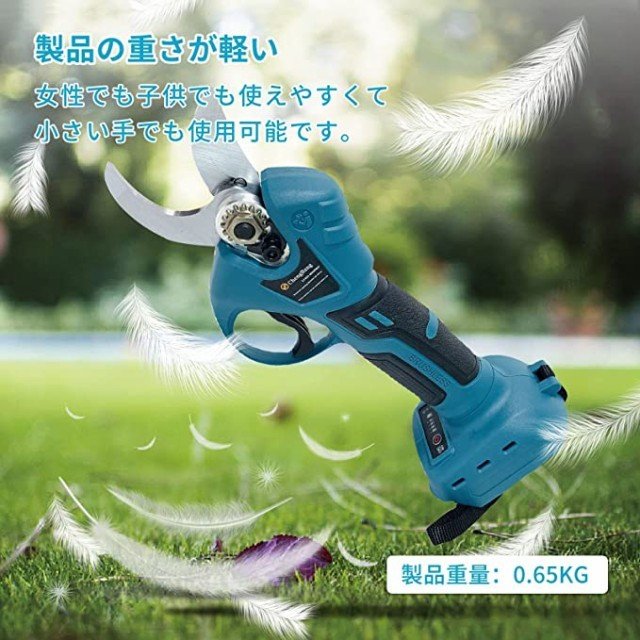 18Vバッテリー対応可能:マキタ18Vリチウムイオンバッテリ-BL1815N BL1820B BL1830B BL1840B BL1850B BL1860Bと互換性あります。 ポータブルで軽量 電気剪定ばさみは重量0.65kg非常に鋭くて耐久性があり、人間工学に基づいて設計されたソフトラバーグリップ、手になじみやすく、長時間使用しても手が疲れません。