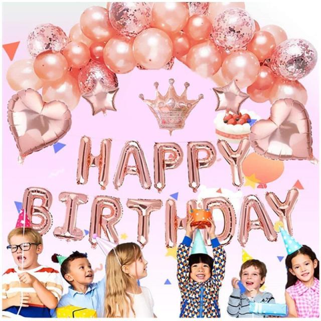 誕生日 飾り付け セット 風船 Happy Birthday バルーン パーティー装飾 バースデー飾り 誕生日装飾セット お祝い 記念日 サプライズ 女の子 大人 ピンク