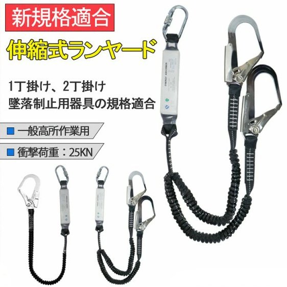 新規格適合 伸縮式ランヤード 安全ロープ ランヤード 補助用 安全作業 落下防止墜落制止用器具 一般高所作業用 空中作業 土木工事 高強度 一丁掛け フック付