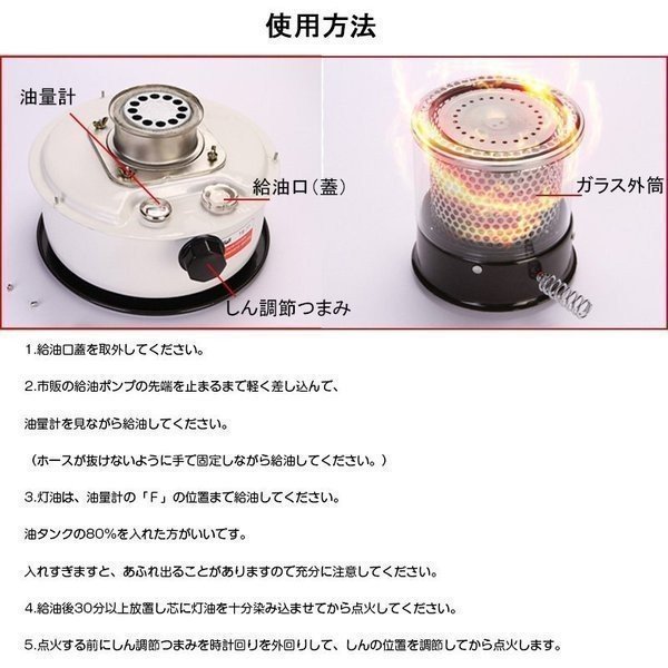 ●【高効率燃焼】:赤外線熱を前方に放射し、空気とほこりを取り除きます。ウィックタイプの燃料供給、最大100%の燃焼率です。丸い強化ガラスを使用すると、強化ガラスは燃焼中に発生する煙を抑えることができます。