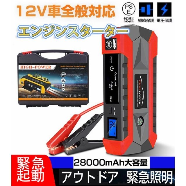 ジャンプスターター 12V 28000mAh 大容量 非常用電源 充電器 ジャンプ スターター エンジンスターター ポータブル充電器 ガソリン車 ディーゼル車に通用