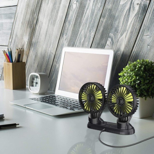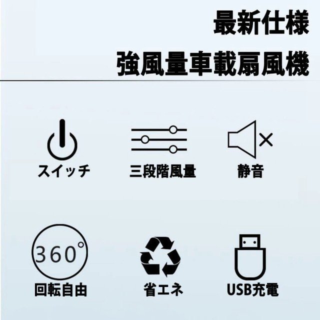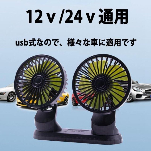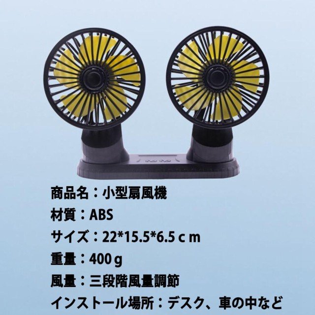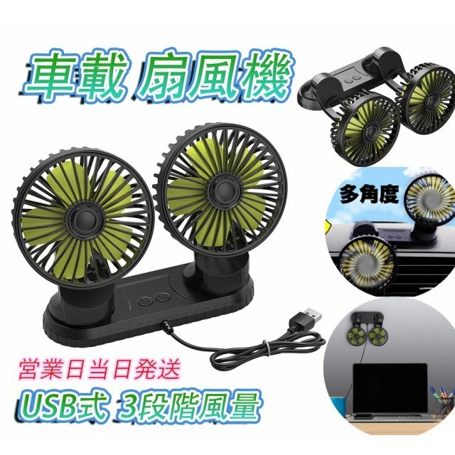 車載扇風機 双頭 車載ファン 小型 強風 USB充電式 省エネ 静音 風量調節 360度手動調節 3段階風量 デスク扇風機 USB扇風機 おフェス 倉庫 夏対策 熱中症対策