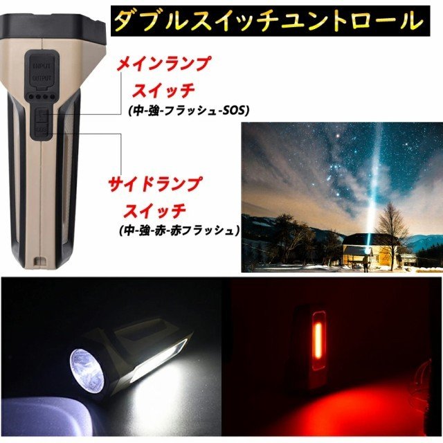 Led充電式懐中電灯 ハンディライト 高輝度 電池残量表示 テーブルランプモード ランタン フラッシュライト 防水 防災 停電対策 勉強 読書 登山 釣り 作業用