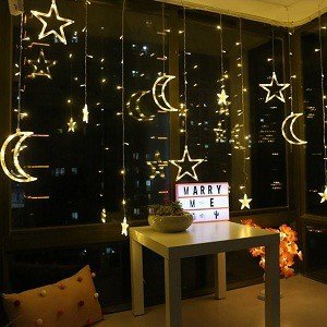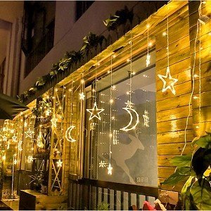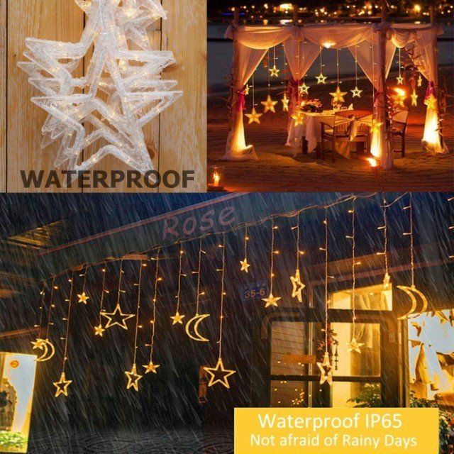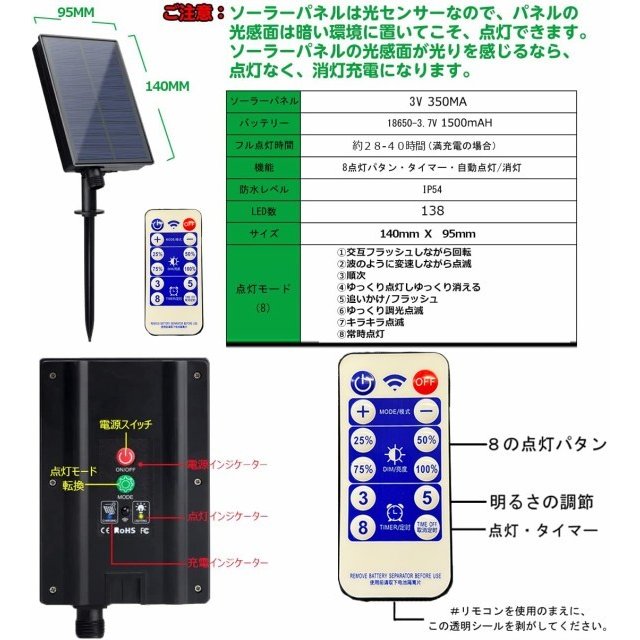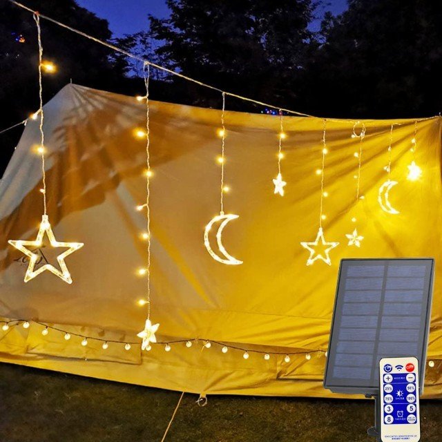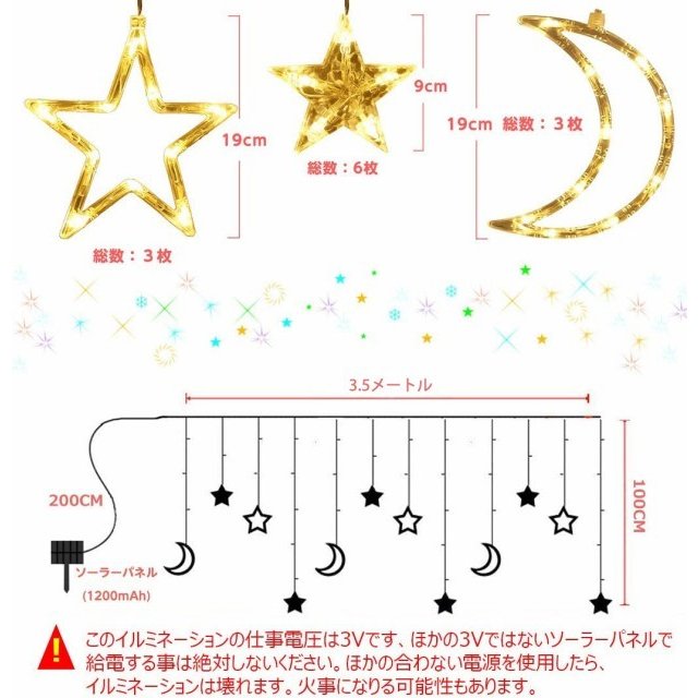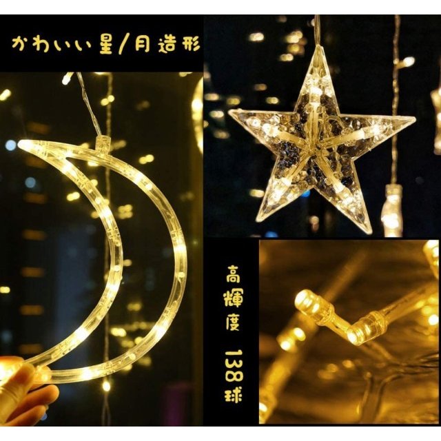 ソーラー イルミネーション ライト 星 月 ストリングライト カーテンライト 138電球 3.5m 8種類モード リモコン付 防水 パーティー 新年 祝日 結婚式