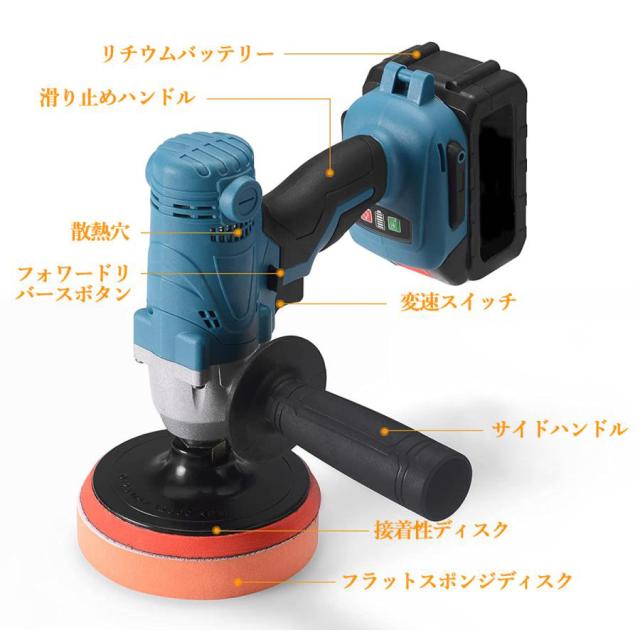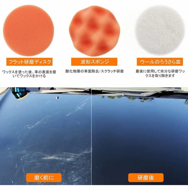 【マジックテープでスポンジ&バフを簡単装着!】らくに高品質のスポンジパッドと羊毛バフを付け替えられ、作業がスムーズになります。超弾性と吸水力に優れた2種類の平型スポンジと波型スポンジがあり、研磨場所の形状により、使い分けできます。細目の羊毛バフは、塗膜の磨き、家具、プラスチック、ガラス、石材の艶出し、拭き取り用に最適です。サンダーペーパーは錆落としに使用できます。ご注意⇒※樹脂類や塗装面等を研磨する場合は必ず低速モードで使用し慎重に作業を行ってください。高速モードで使用すると焼けや損傷の原因となります。
