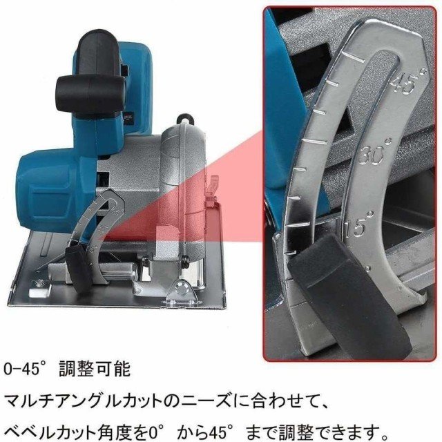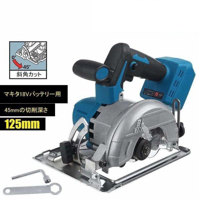 丸鋸 充電式マルノコ 18V 電動のこぎり 最大切込み深さ55mm 径125mm 0-45°切断角度調節 電動工具