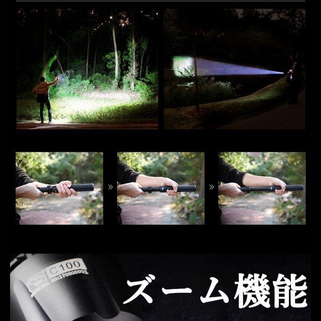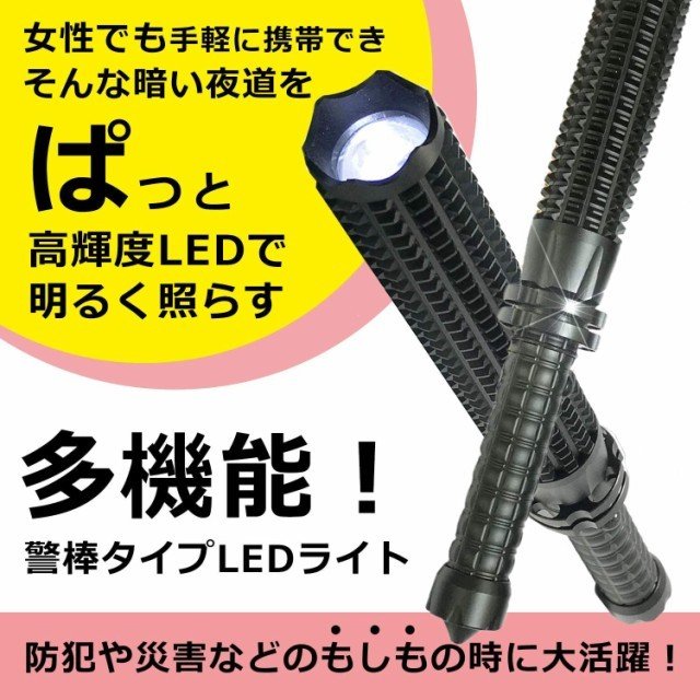 警棒スタイル LEDライト 護身 懐中電灯 伸縮 ズームライト 明るく照らす 災害 防災 緊急脱出 スパイクを装備 最新 3モード 高輝度 不審者対策 滑りにくい