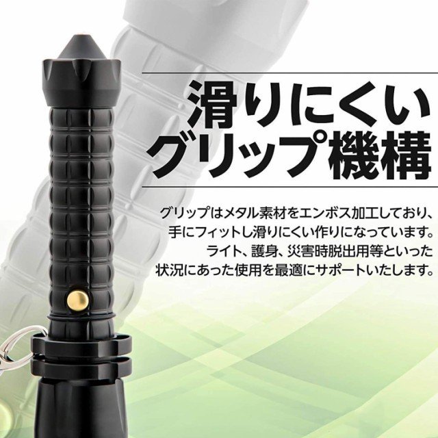 また取っ手の尾先にある脱出用スパイクで、窓ガラスや車のフロントガラスも粉砕可能