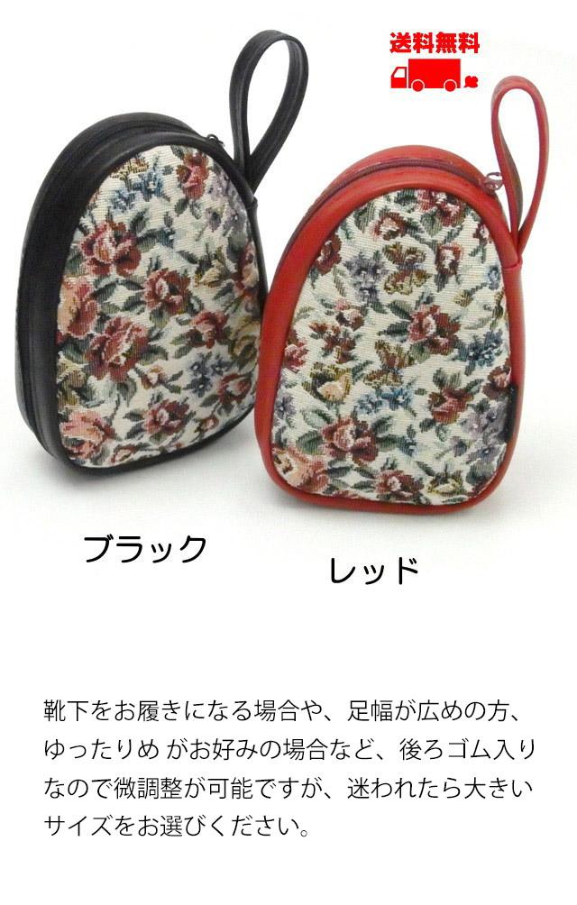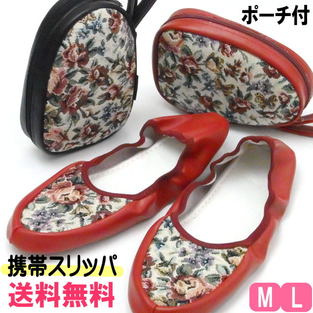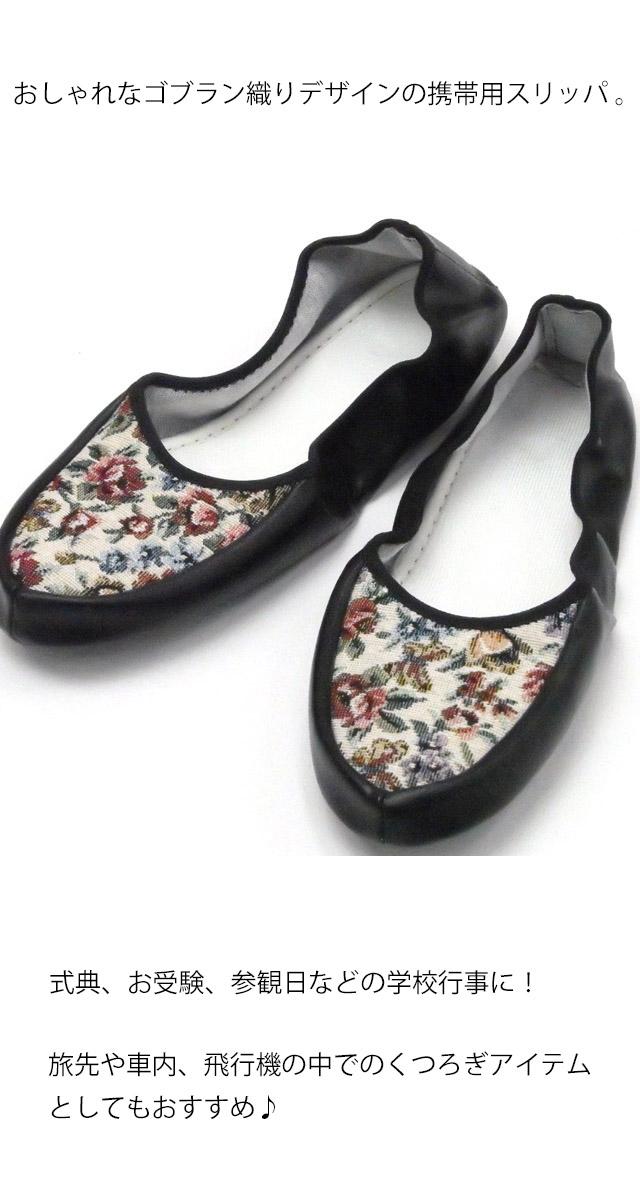 スリッパ 携帯用 薔薇柄 ゴブラン織り 収納ポーチ付き ルームシューズ 入学式 卒業式 学校行事 保護者会 参観日 薔薇雑貨