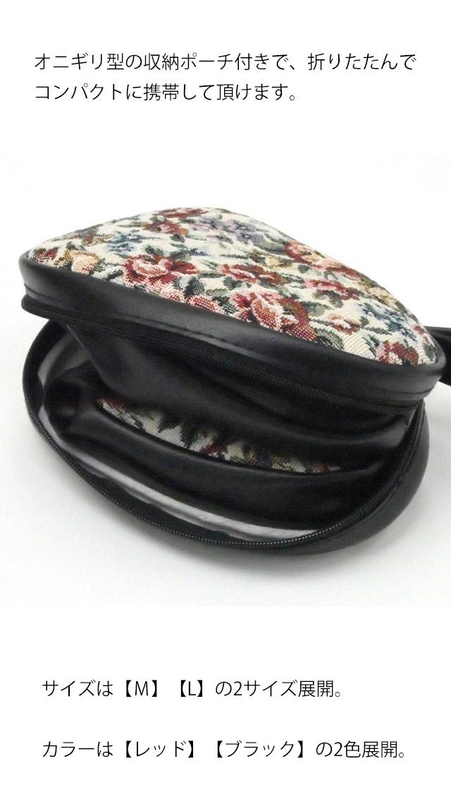オニギリ型の収納ポーチ付きで、折りたたんでコンパクトに携帯して頂けます。