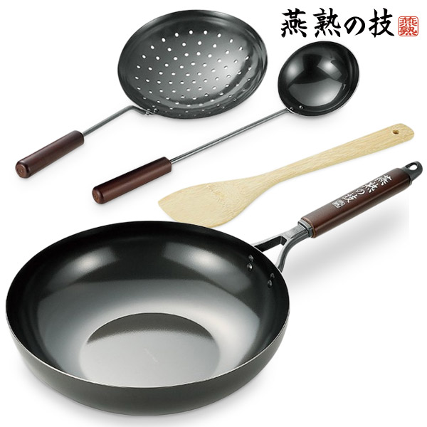 ■商品名/よこやま 燕熟の技 鉄製いため鍋 30cm お玉・ジャーレン・竹べら