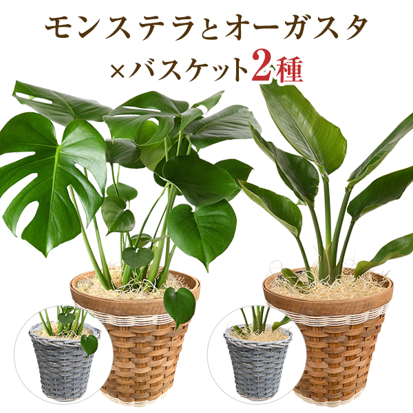 オーガスタ6号鉢orモンステラ6号鉢、バスケット、育て方のしおり