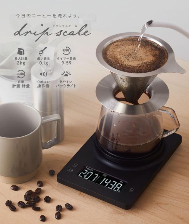 スケール すけーる scale 秤 はかり ドリップスケール どりっぷすけーる コーヒースケール こーひーすけーる キッチンスケール きっちんすけーる 計量器 家庭用計量器 コーヒー 淹れる 豆の量 抽出時間 湯量 正確 計測 タイマー自動開始/停止機能 自動でタイマー タイマー計測 カウントアップ式 ハンドドリップサポート バックライト付 ブラック