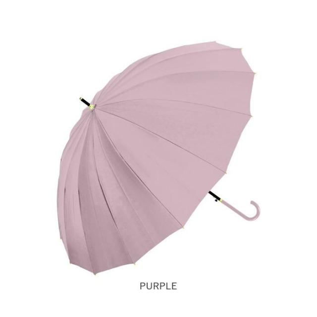 傘骨は、和傘のように風雅なシルエットが印象的な16本骨タイプ。軽くて丈夫なグラスファイバー骨で、強い風にも折れにくく安心。