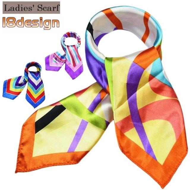 スカーフ 正方形 50cm レディース バッグスカーフ バンダナ サテン調 光沢感 ボーダー柄 ストライプ柄 首元 ヘアアレンジ