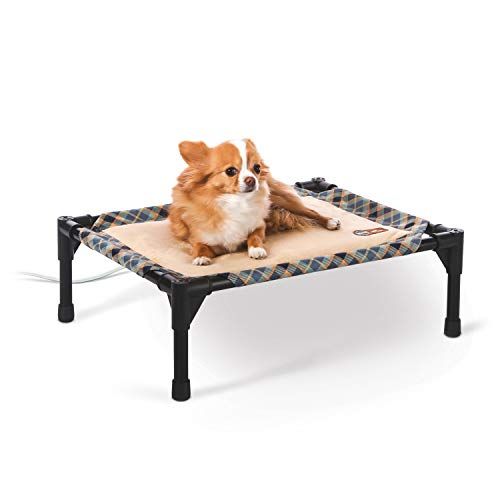 K&HペットプロダクトThermo Pet Cot Heated Elevated Dog Bed Blue Plaid / Tan、Small 17 X 22 X 7 Inches