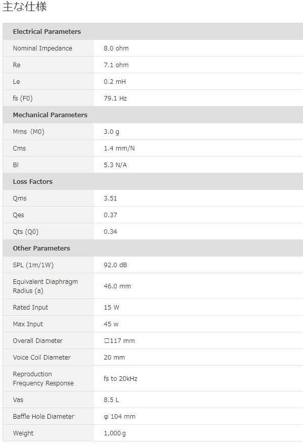 小口径とは一線を画す豊かな低音と煌びやかな中高音域とがブレンドし音楽を際立たせます。