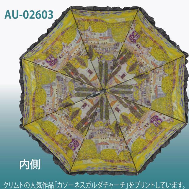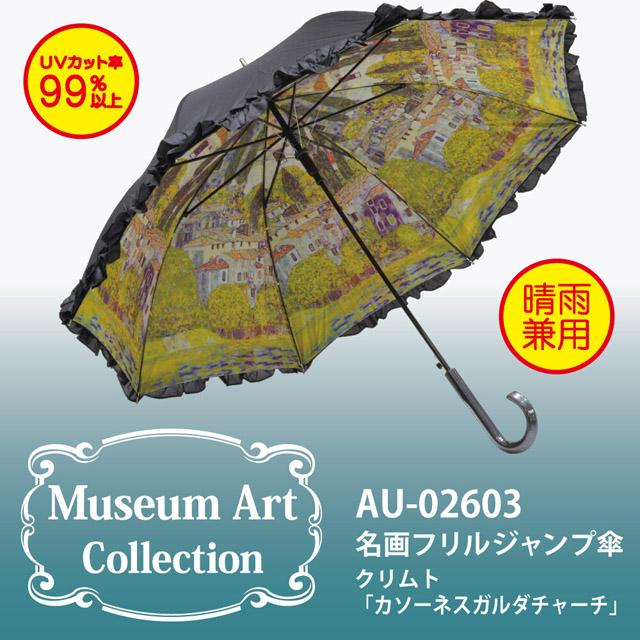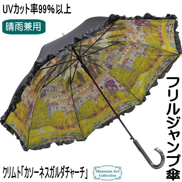 傘 晴雨兼用 レディース クリムト カソーネスガルダチャーチ フリル 名画 長傘 ジャンプ傘 名画 UVカット 99% かわいい おしゃれ