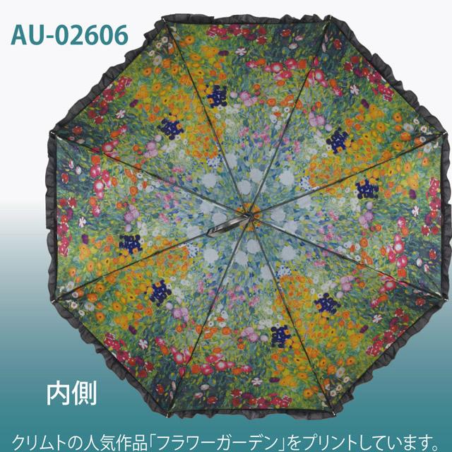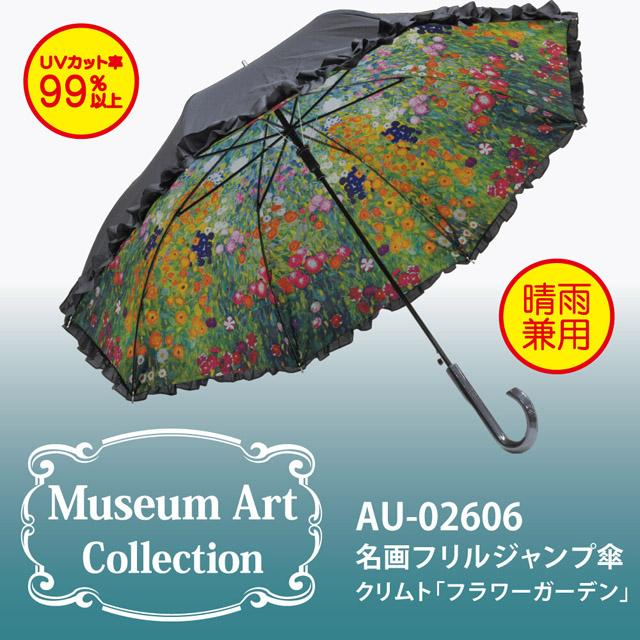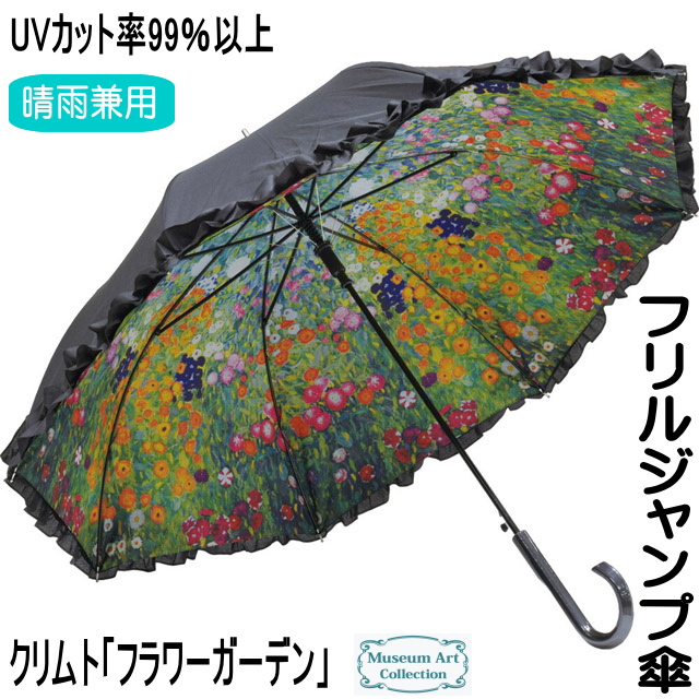 傘 クリムト フラワーガーデン 晴雨兼用 UVカット レディース 長傘 ジャンプ傘 ワンタッチ フリル 名画 かわいい おしゃれ