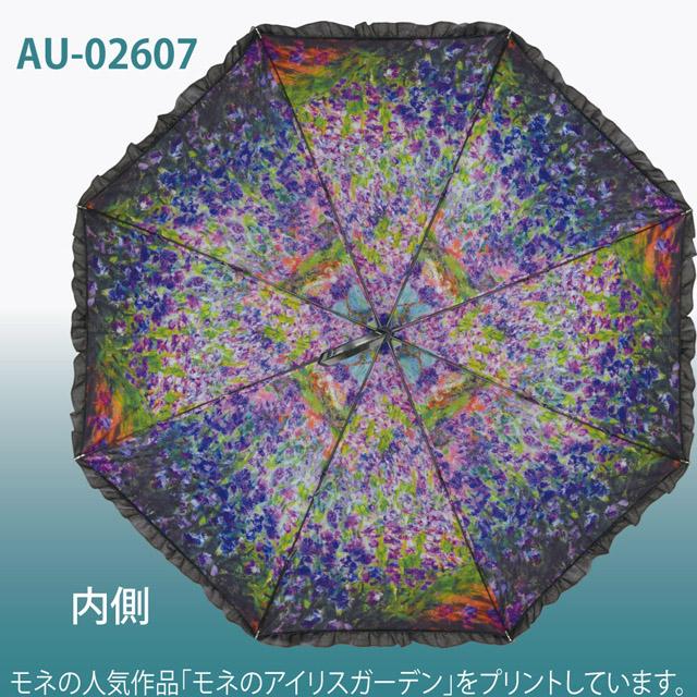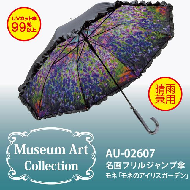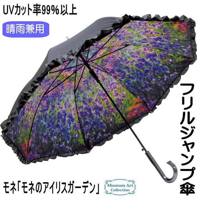 傘 晴雨兼用 モネのアイリスガーデン モネ レディース 長傘 ジャンプ傘 ワンタッチ フリル 名画 UVカット 女性 かわいい おしゃれ