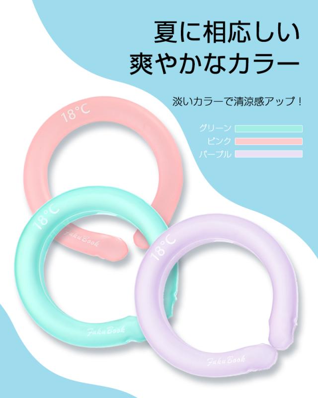 この「28°クールリング」は冷蔵庫や冷凍庫に入れると、素早く冷やすひんやりアイテムです。PC(水冷液/冷却液)を採用し、リング自体が吸熱、放熱することで28度(最高温度)をキープするので、過度な冷却で凍傷になる心配もありません。優しい温度で、火照った首元を冷やしてくれます。夏の熱中症対策や、熱がこもちがちな料理中、集中したい仕事や勉強時など、様々なシーンを快適にしてくれます。