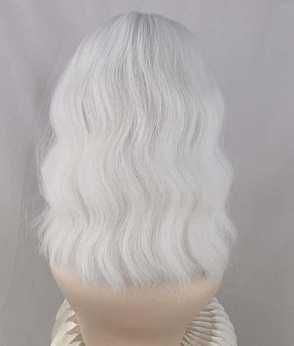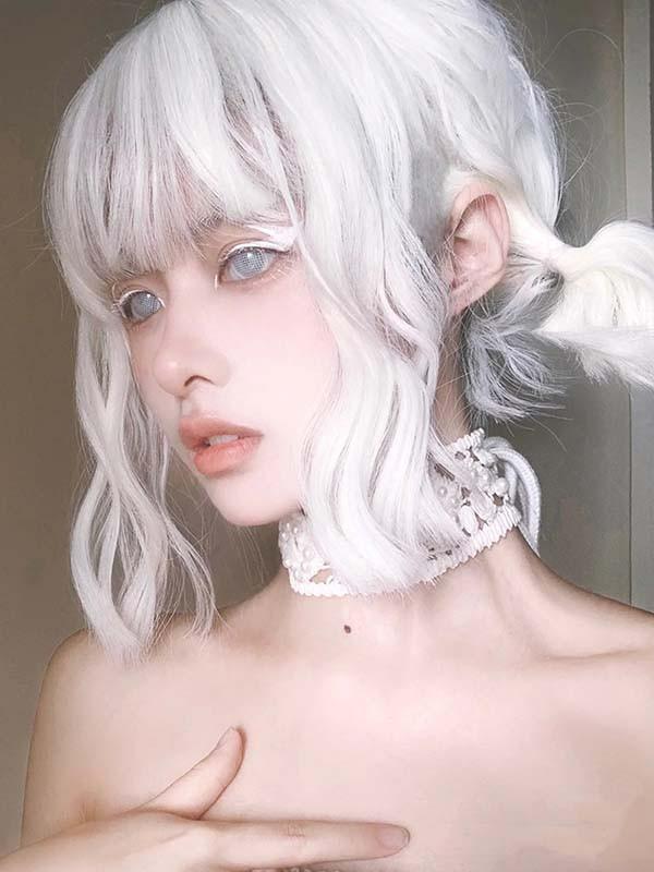 ウィッグ フルウィッグ ホワイト 白金色 パーマ ショート レディース ハロウィン ふんわり前髪 切りっぱなしボブ