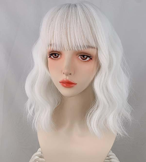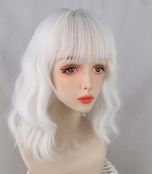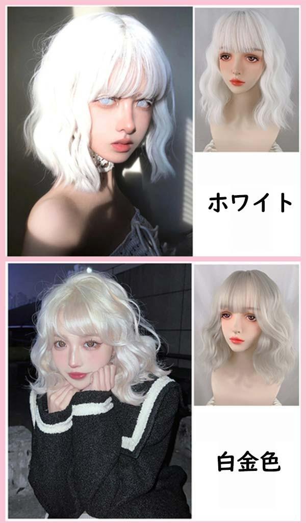ウィッグ フルウィッグ ホワイト 白金色 パーマ ショート レディース ハロウィン ふんわり前髪 切りっぱなしボブ ボブヘアー ぱっつん 前髪あり ナチュラル 原宿風 かつら ぱっつん前髪 コスプレ 可愛い 耐熱ウィッグ コスチューム 仮装 大人用 普段使い 文化祭 イベント 学園祭 中世ヨーロッパ 女装 発表会 文化祭 学園祭 学芸会 舞台 演劇 変装 小道具 dp081x1x1t2
