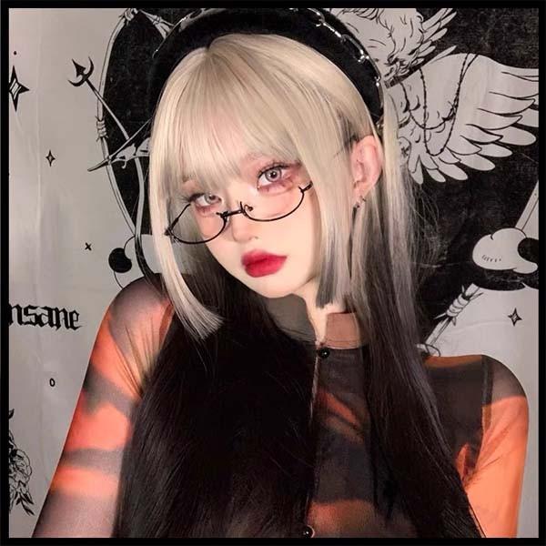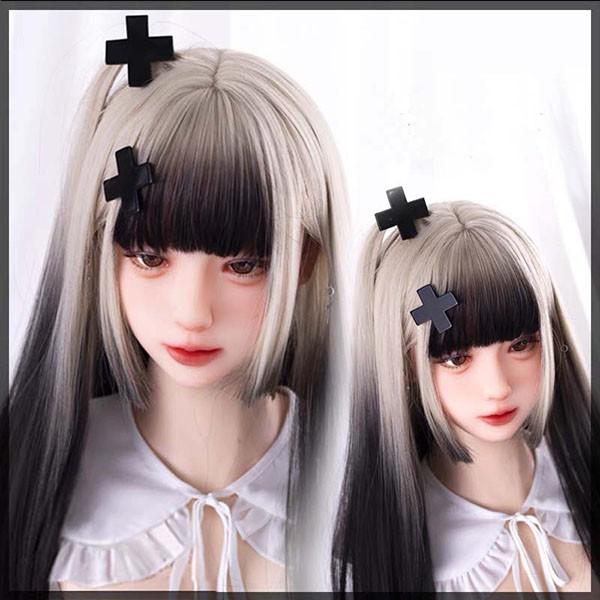 ウィッグ グラデーション ストレート 姫カット ロング レディース フルウィッグ ツートンカラー ぱっつん前髪 コスプレ ロリータ Lolita 原宿風 可愛い