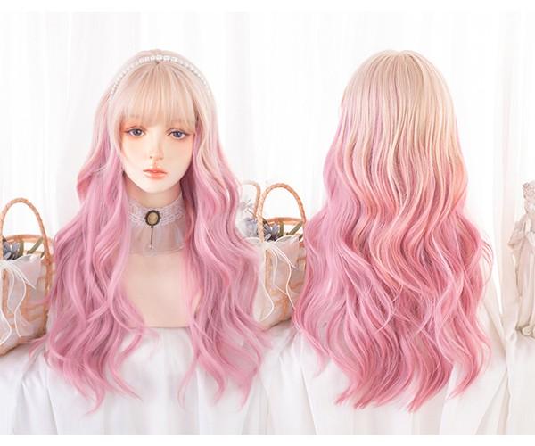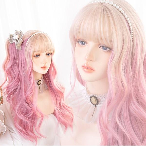 ウィッグ フルウィッグ グラデーション 長髪 ロング 巻き髪 ロングウィッグ ぱっつん前髪 ロリータ lolita 前髪あり ハロウィン 原宿風 韓国風 かつら コスプレ 可愛い コスチューム 仮装 大人用 普段使い ピンク ブルー 文化祭 イベント 学園祭 演劇 舞台 学芸会 dp021jcjct2