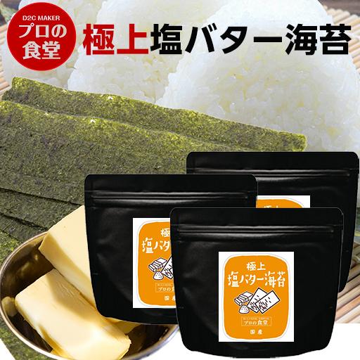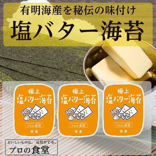 味付け海苔 送料無料 塩バター海苔 3パック 有明産 国産 高級 味付けのり ご飯のお供 味のり ぽっきり Pontaパス 大容量 オトクセット キッズに人気のカレーにあう海苔 キャンプやアウトドアにも