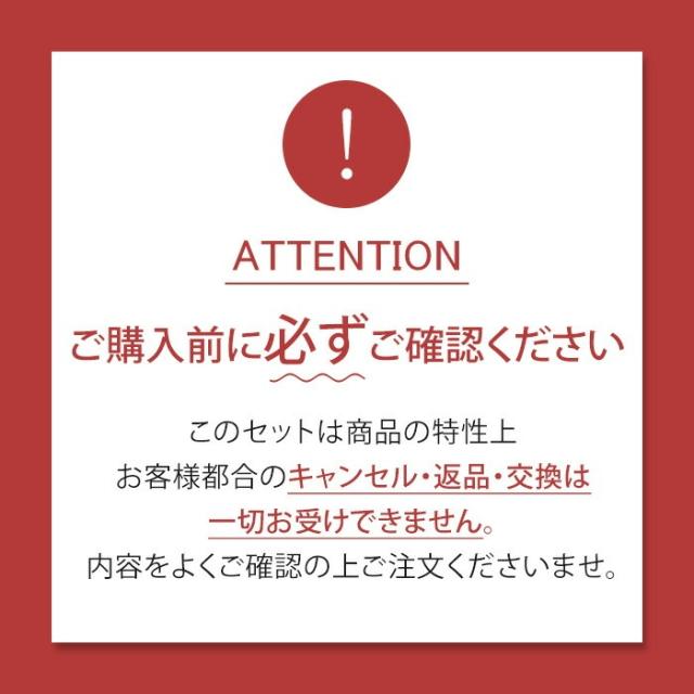 ご案内 ●商品画像はセットの一例です。 ※画像の商品が必ず入っているとは限りません。 ●同じアイテムが入る場合があります。 ●特別奉仕品のため、ご注文後の【キャンセル・注文内容の変更】及び 【お客様都合による返品・交換】は一切お断り致しております。 お手続きの際は、ご注文内容を十分にご確認頂きますようお願い致します。 ●上記をご確認のうえご注文をお願いいたします。 |
