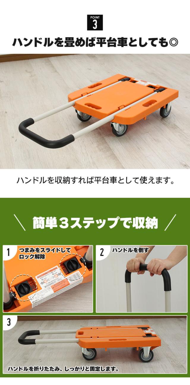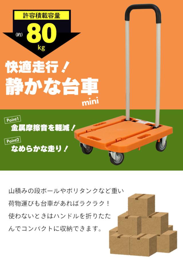 台車 折りたたみ コンパクト 静音 ゴム製キャスター付き 耐荷重80kg 軽量 持ち運び 便利 カート 荷物 運搬 運ぶ 持ち手穴付き