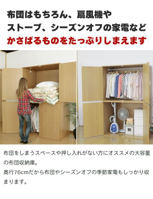 収納庫 布団タンス 2個組 布団収納庫 日本製 布団たんす 幅115.5 奥行76 高さ93.5 布団収納 収納家具 大型収納 大容量 布団 収納 幅115cm ハンガーバー付き 扉付き 押し入れ 押入れ クローゼット ワードローブ 扉 寝室 ふとん ラック 布団収納庫 押入 洋服 収納 大容量収納